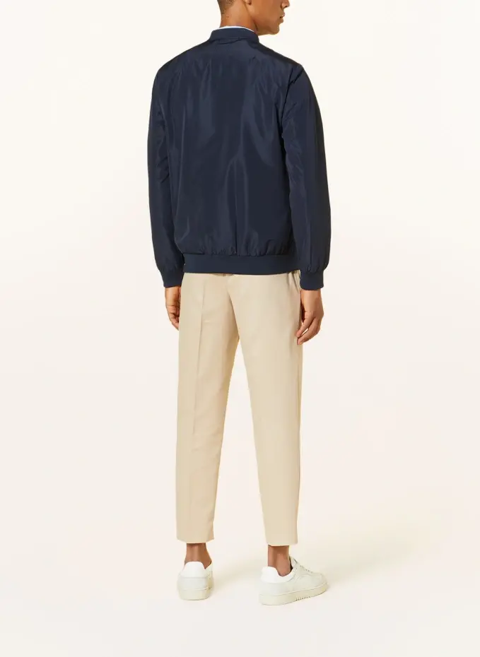 Прямого покроя. Колледжский воротник. Закрывается на молнию. Боковые карманы. Внутренний карман. Эластичные манжеты на концах рукавов и по низу. Гладкая внутренняя подкладка. Вышивка логотипа на высоте груди. Качество гладкого нейлона
