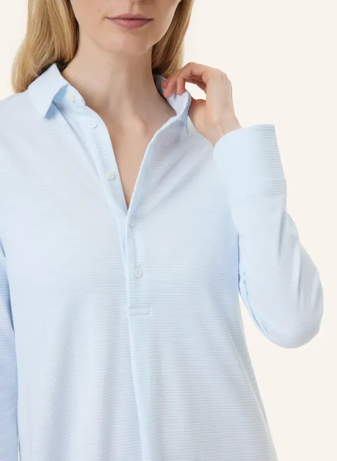 Ночная сорочка с воротником и планкой на пуговицах классического фасона свободного кроя. Складки на спине обеспечивают дополнительный комфорт. Трикотаж в тонкую полоску из сертифицированного органического хлопка связан специально для Yellamaris в Швабском Альбе и обеспечивает ощущение чистоты и сухости на коже. Вырез с воротником и планкой на пуговицах. Плиссированная деталь сзади. Качество Джерси.