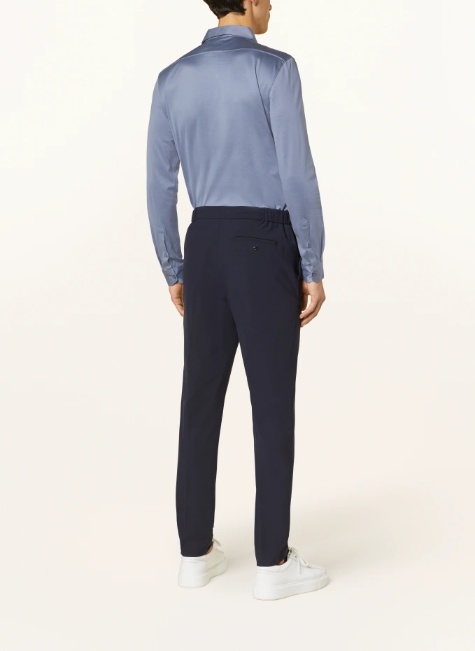Укороченная высота талии. Коническая ножка. Эластичная талия с кулиской внутри. Застегивается на пуговицу, крючок и молнию. Складки, подчеркивающие фигуру. Боковые карманы. Прорезные карманы на пуговицах сзади