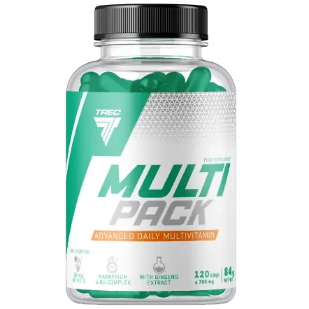 Trec Multi Pack содержит разработанную в лаборатории и количественно отобранную органическую композицию из 27 эффективных активных веществ высочайшего качества. Препарат представляет собой витаминный комплекс, стимулятор многих обменных процессов, укрепляющих жизненный тонус человека. Препарат был подготовлен для поддержки организма в периоды интенсивных физических и умственных нагрузок. Благодаря высокой концентрации антиоксидантных веществ и биофлавоноидов является отличным препаратом с дезинтоксикационным эффектом (выведение токсинов из организма) - борется с опасными для здоровья свободными радикалами, что значительно повышает иммунитет организма. Помните, что так называемая в крайних случаях свободные радикалы могут привести к образованию рака, поэтому стоит защитить себя от их возможной вредоносной активности.
