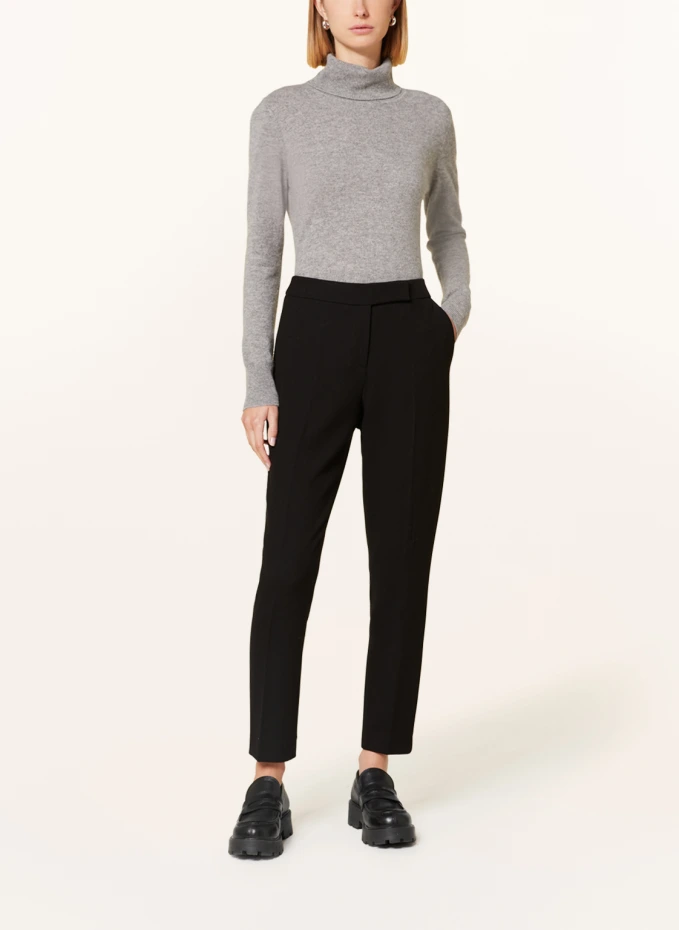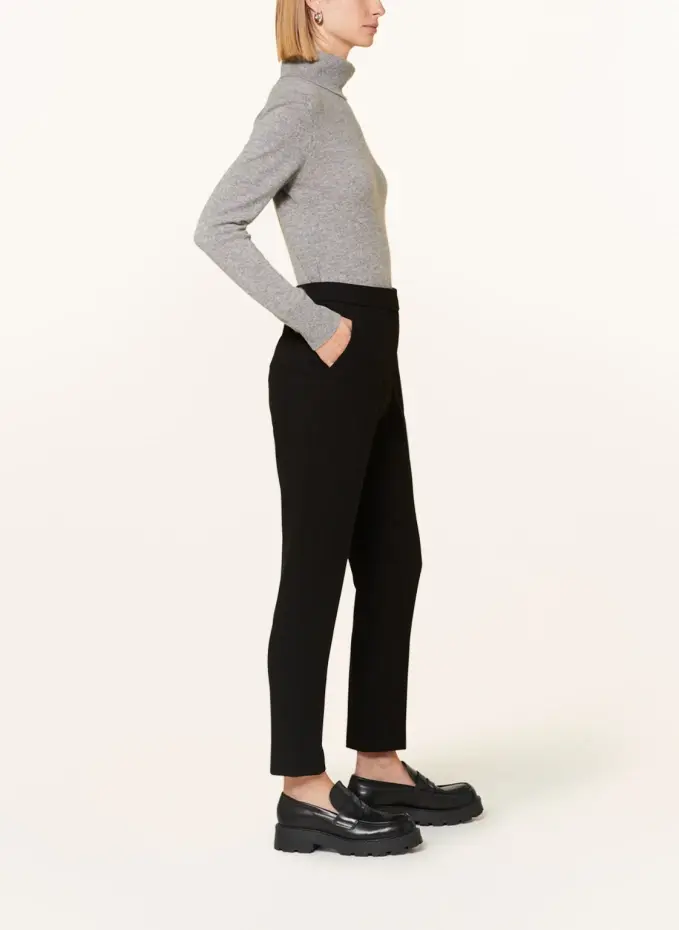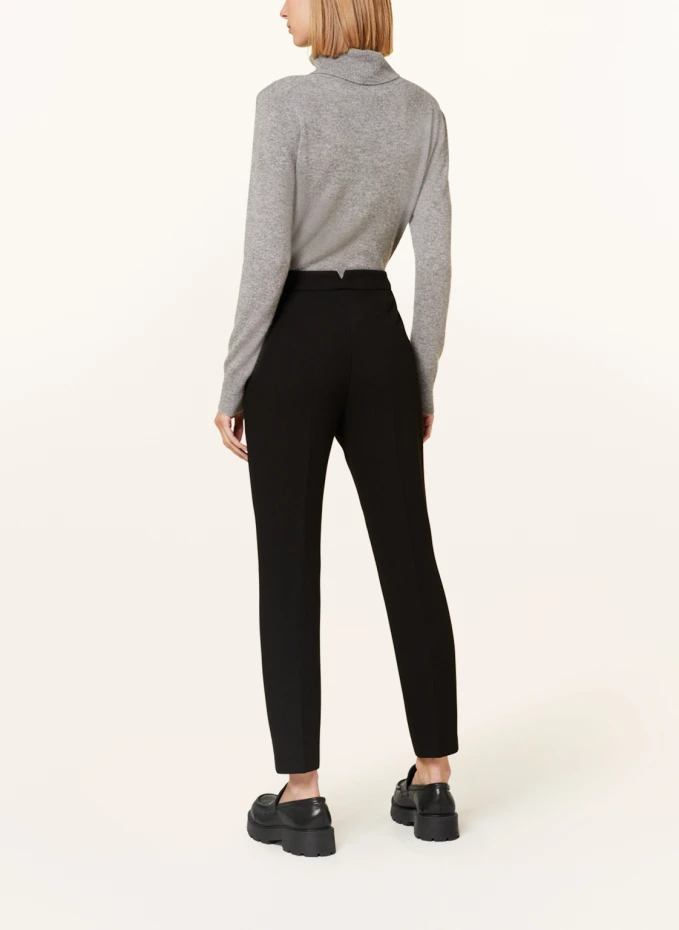 Высокая талия. Коническая ножка. Застегивается на пуговицу, крючок и молнию. Боковые карманы. Структурированное ощущение