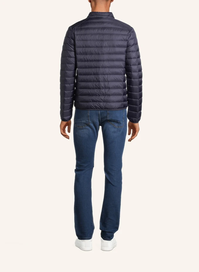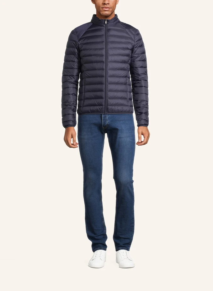 Атласный, стеганый и водоотталкивающий материал. Пухово-перьевой наполнитель с сертификатом «RDS». Плотный разрез. Небольшой стеганый воротник-стойка. Боковые карманы. Контрастные по цвету внутренние швы. Оригинальный фетровый логотип на левом рукаве.