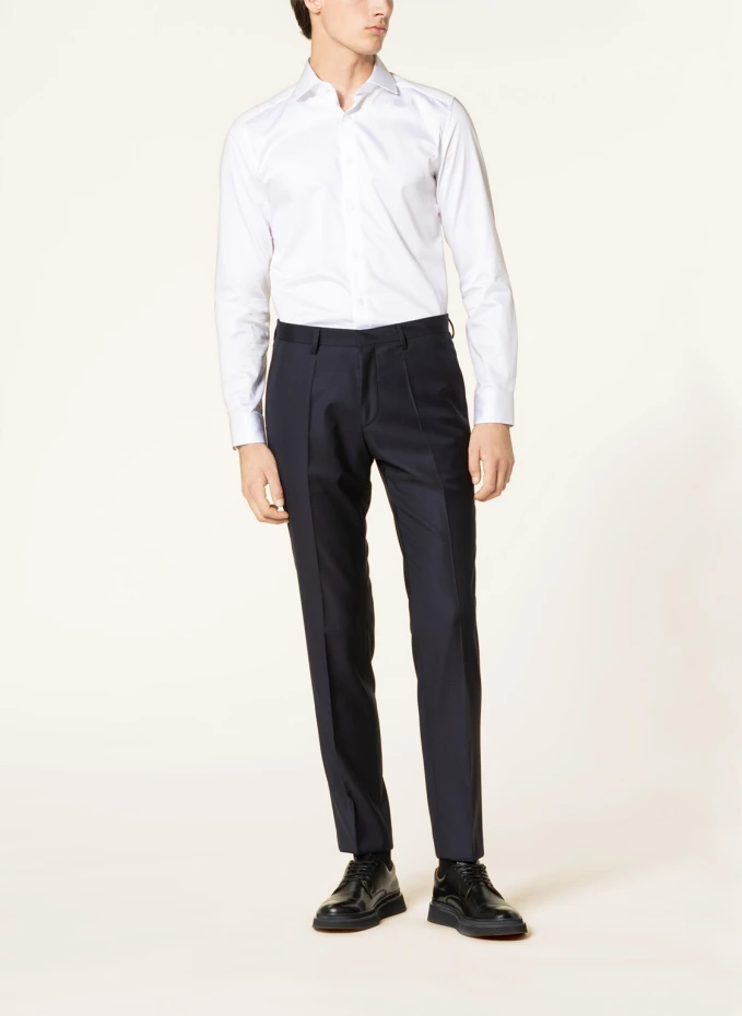 Посадка согласно производителю: Regular Fit. Укороченная высота талии. Коническая ножка. Закрывается на крючок и молнию. Складки, подчеркивающие фигуру. Боковые карманы. Карманы с кантом на пуговицах. Ударная группа. Эластичная качественная шерсть из натуральной шерсти.