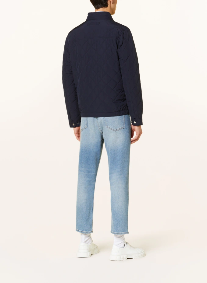 Прямого покроя. Воротник-стойка на кнопке. Закрывается на молнию. Боковые карманы. Регулируемый по ширине рукав заканчивается кнопками. Гладкая внутренняя подкладка. Синтетический наполнитель. Петля с надписью сзади. Пришивка этикетки на высоте груди.