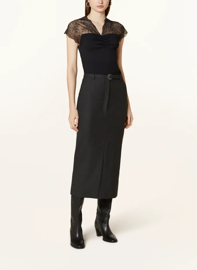 Немного нестандартный крой. V-образный вырез. Кружевные плечи. Сбор на фронте. Ребристый дизайн. Эластичное качество