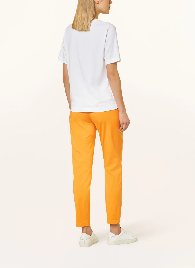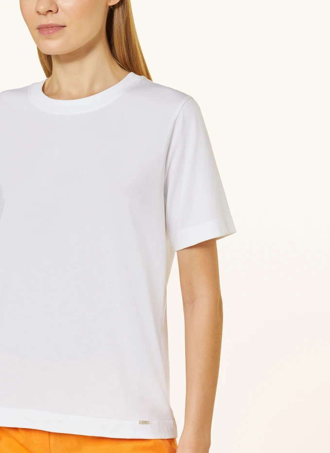 Из Джерси. Прямого покроя. Круглый вырез. Короткие рукава. Гладкая структура. Мягкое ощущение. Металлическая бирка на подоле. Эластичная обработка хлопка