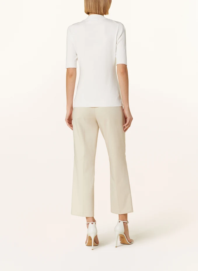 Тонкая вязка. Прямого покроя. Круглый вырез. Ребристые манжеты и подол