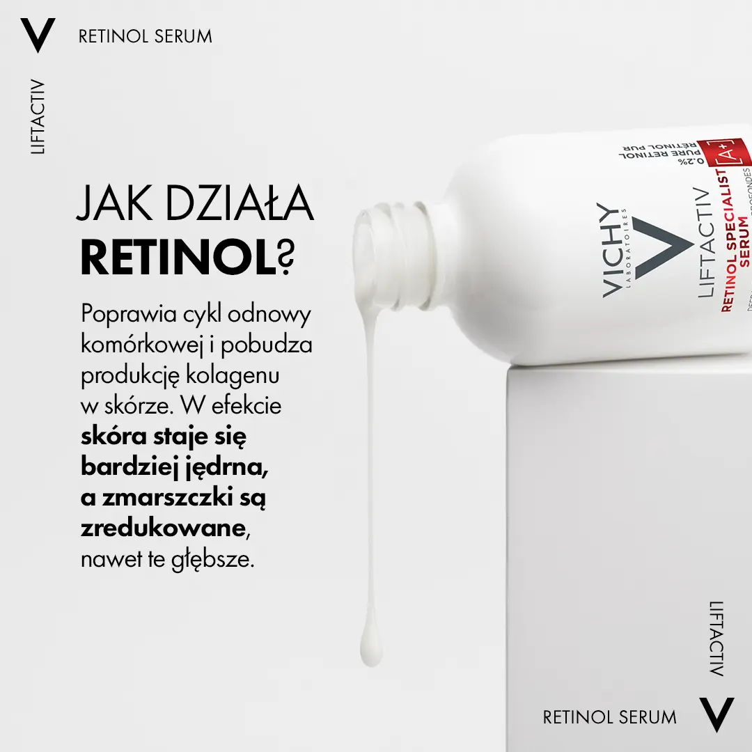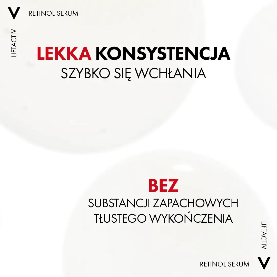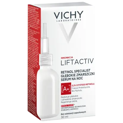 Наряду со старением кожи и воздействием внешних факторов обновление клеток кожи замедляется, а морщины становятся более фиксированными и глубокими. Ночная сыворотка Liftactiv Retinol Specialist содержит до 0,2% чистого ретинола — одного из ингредиентов, наиболее часто рекомендуемых дерматологами для борьбы с признаками старения. Его эффект усилен пробиотическими фракциями и биопептидами, которые помогают стимулировать синтез коллагена. Благодаря использованию запатентованной технологии Retinol Guard стабильность ретинола в нашей формуле обеспечивает максимальную эффективность. Уже после первого применения кожа становится на +50%* эластичнее, а со временем сокращаются все виды морщин, даже самые глубокие. Эффективно уменьшает морщины у 100% женщин**. Эффективность формулы была подтверждена 5-месячным клиническим испытанием. Протестировано под дерматологическим контролем. Без ароматизаторов. *Инструментальное исследование, 40 женщин в возрасте 40-65 лет. **Клиническое исследование, 12 недель, женщины 35–75 лет, при использовании по назначению.