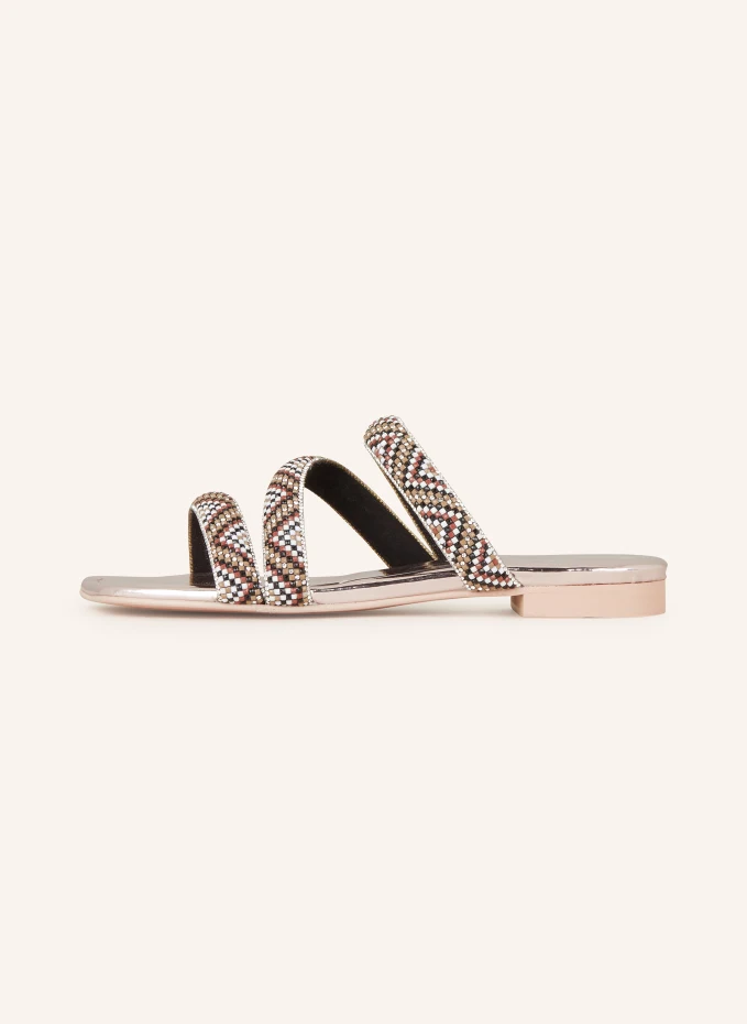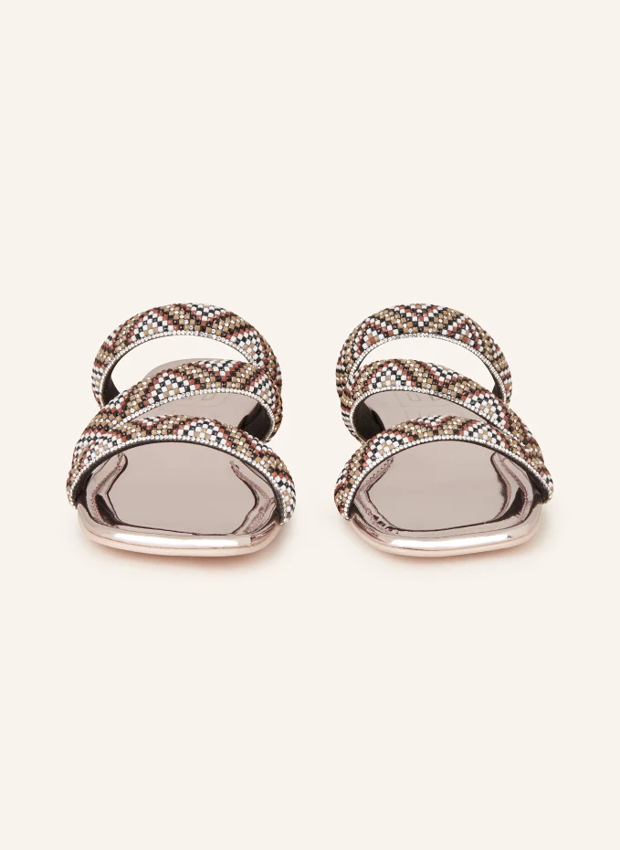 Узкие бретели с отделкой драгоценными камнями над подъемом. Округленная квадратная форма. Сделано в Испании