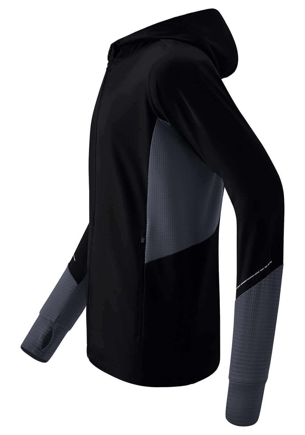 Беговая куртка изготовлена из очень легкого водоотталкивающего функционального материала и поэтому станет идеальным спутником для пробежек в плохую погоду. Благодаря функциональным свойствам вы получаете удобную посадку. Это дополняется вентиляционным отверстием на спине. Куртка оснащена множеством практичных дополнений, которые делают ее настоящей незаменимой вещью: боковые карманы на молнии, высокий воротник с капюшоном и отверстия для больших пальцев на подоле рукавов с обеих сторон. Светоотражающие элементы, обеспечивающие лучшую видимость, также очень практичны.