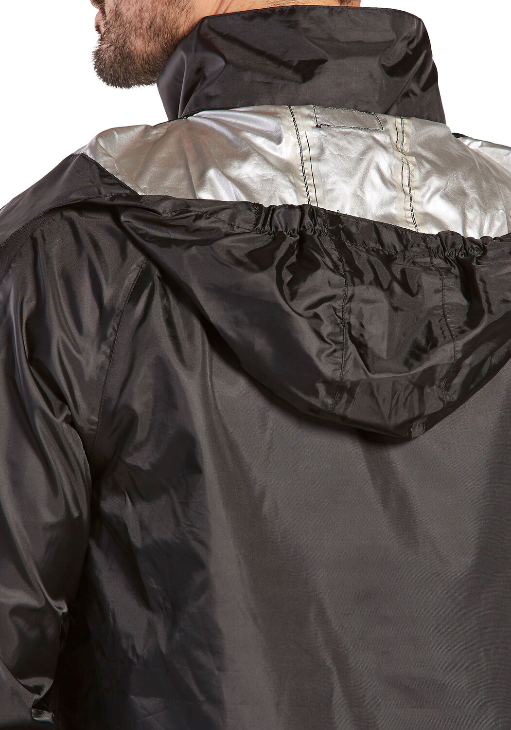- Высокий воротник-стойка с встроенный капюшон.