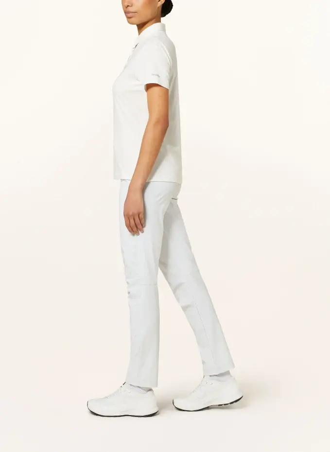 Изготовлен из функционального материала. Водоотталкивающий. Регулирование влажности. Растяжка в 4 стороны. Посадка согласно производителю: Slim Fit. Коническая ножка. Закрывается на кнопку и молнию. Боковые карманы на молнии. Карман на молнии на ноге. Задний карман на молнии. Дартс на колене. Детали этикетки. Легкое качество материала