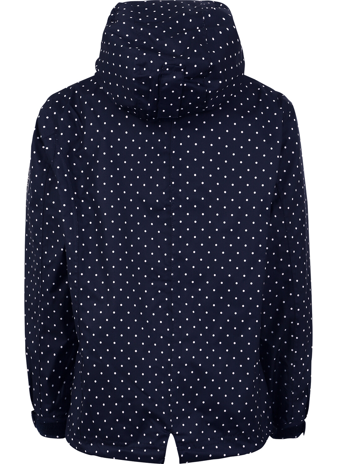 Дышащая куртка для девочек из PXE-PRO с декоративным принтом по всей поверхности. Молния во всю длину спереди на подкладке. Прикрепленный регулируемый капюшон с козырьком. 2 боковых кармана со встроенной упаковочной сумкой. Регулируемые манжеты на рукавах. Карман для смартфона. Вес по размеру 140 = 330г. Длина спинки по размеру 140 = 60 см.