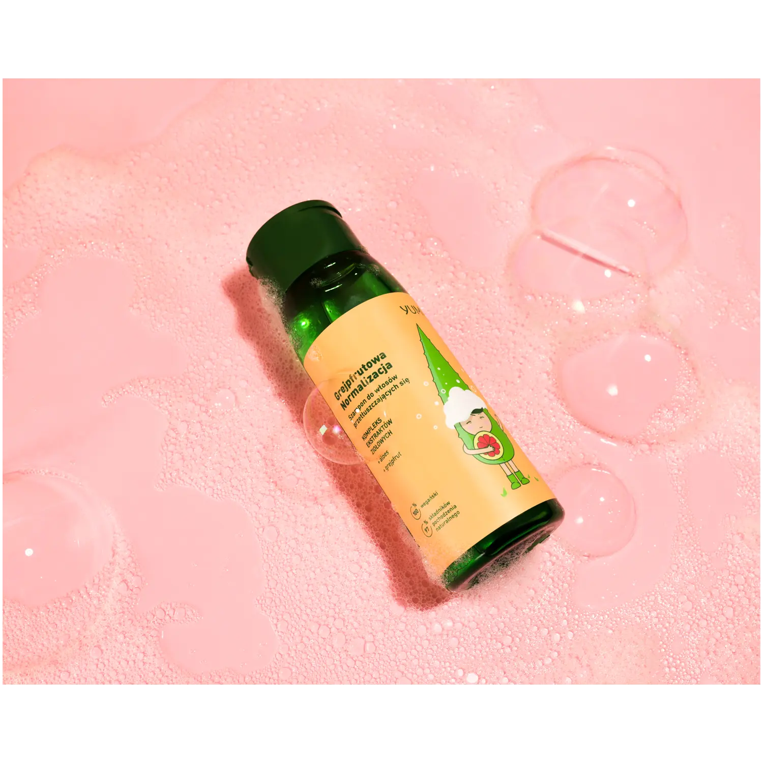 Шампунь для волос с грейпфрутом Yumi представляет собой сочетание сока алоэ с ингредиентами,
