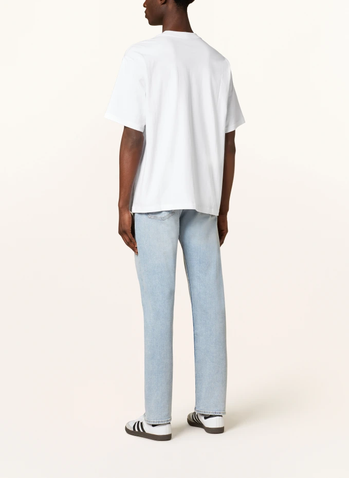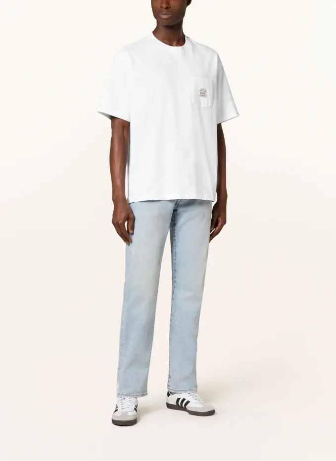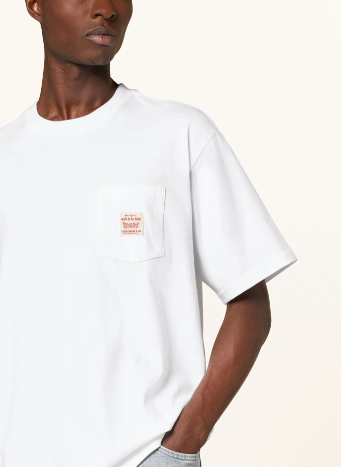 Прямого покроя. Ребристый круглый вырез. Нагрудный карман. Нашивка с этикеткой на нагрудном кармане. Чистый хлопок