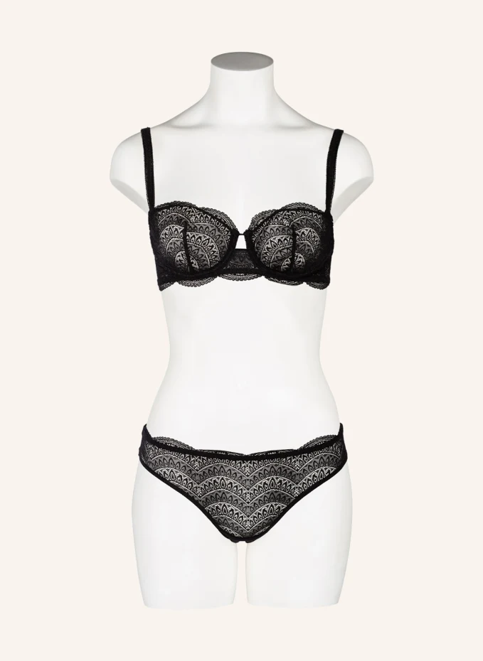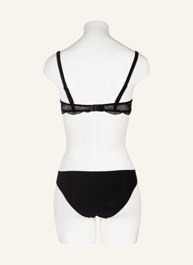 Интегрированные храмы. Без боковых стержней. Вертикальный шов для особенно хорошего подъемного эффекта. Широкий мост с вырезом. Регулируемые бретели. Регулируется в три этапа сзади с помощью двух петель. Прозрачная кружевная отделка