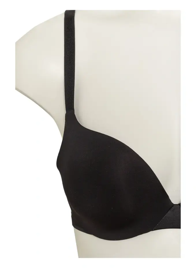Поднимите чашки. Интегрированные храмы. Без боковых стержней. Регулируемые бретели-спагетти. Регулируется в три этапа сзади с помощью двух петель. Непрозрачная обработка. Бесшовная обработка. Подходит как бюстгальтер-майка.