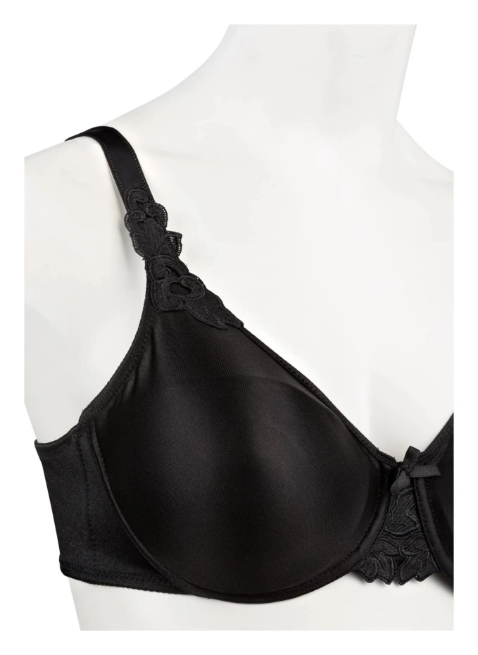 Литой. Интегрированные храмы. Без боковых стержней. Широкий мост. Регулируемые бретели с гипюровой вышивкой. Регулируется в три этапа сзади с помощью двух петель. Непрозрачная обработка. Бесшовная обработка. Небольшой эффект минимизации. Подходит как бюстгальтер-майка.