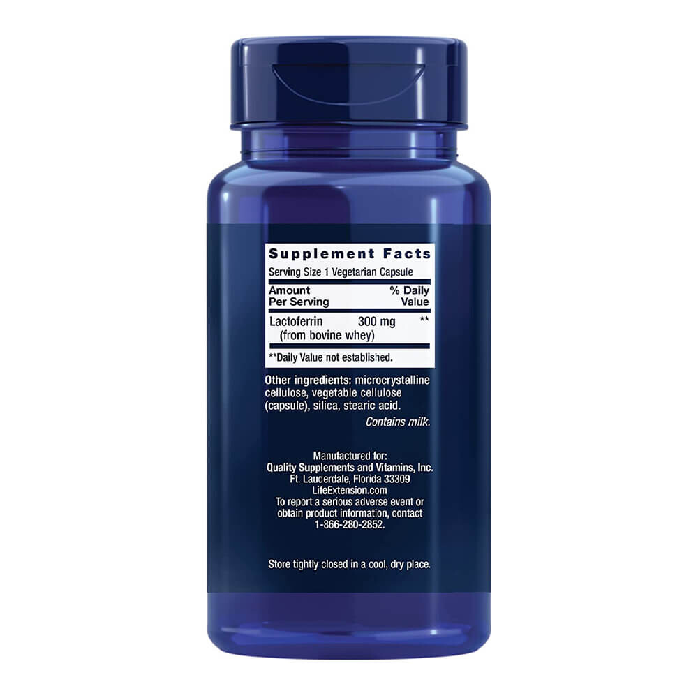 Содержание активных ингредиентов на дневную дозу (1 капсула): Биоферрин (из бычьей сыворотки) [содержит 95% аполактоферрина (285 мг)] 300 мг
