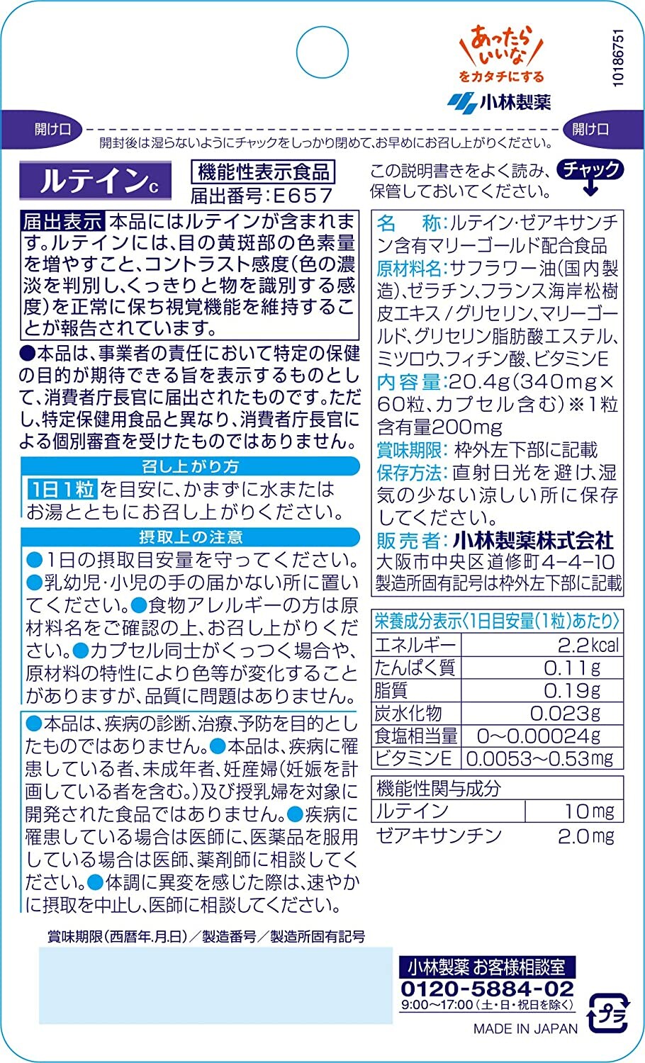 Этот продукт содержит лютеин. Сообщалось, что лютеин увеличивает количество пигмента в макуле глаза и поддерживает нормальную контрастную чувствительность (чувствительность к различению оттенков цвета и четкому различению объектов) для поддержания зрительной функции.