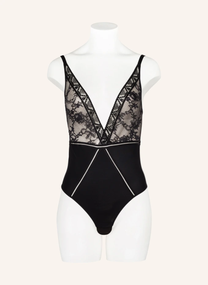 Облегающий фигуру крой. Непрозрачная обработка. Мягкие чашки. V-образный вырез. Не железный. Без боковых стержней. Регулируемые бретели-спагетти. Полное прикрытие ягодиц. Вырез сзади. Кружевные вставки. Изготовлено из переработанных материалов