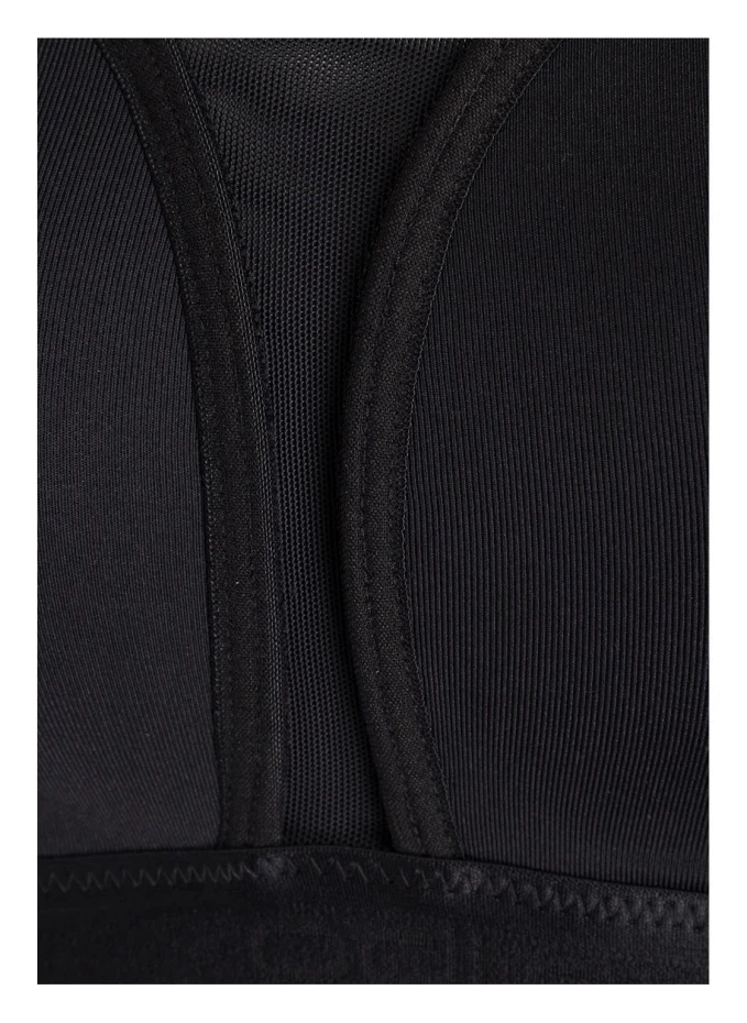 Кубок Б. Высокая функция поддержки. Подходит для занятий высокой интенсивности: бега, аэробики и тенниса. Формованные чашки. Эластичная лента под грудью. Регулируется в три этапа сзади с помощью трех петель. Широкие регулируемые бретели. Сетчатые вставки по бокам и спереди. Регулирование влажности. Награжден знаком Fair Wear. Улучшает условия труда работников швейного производства.
