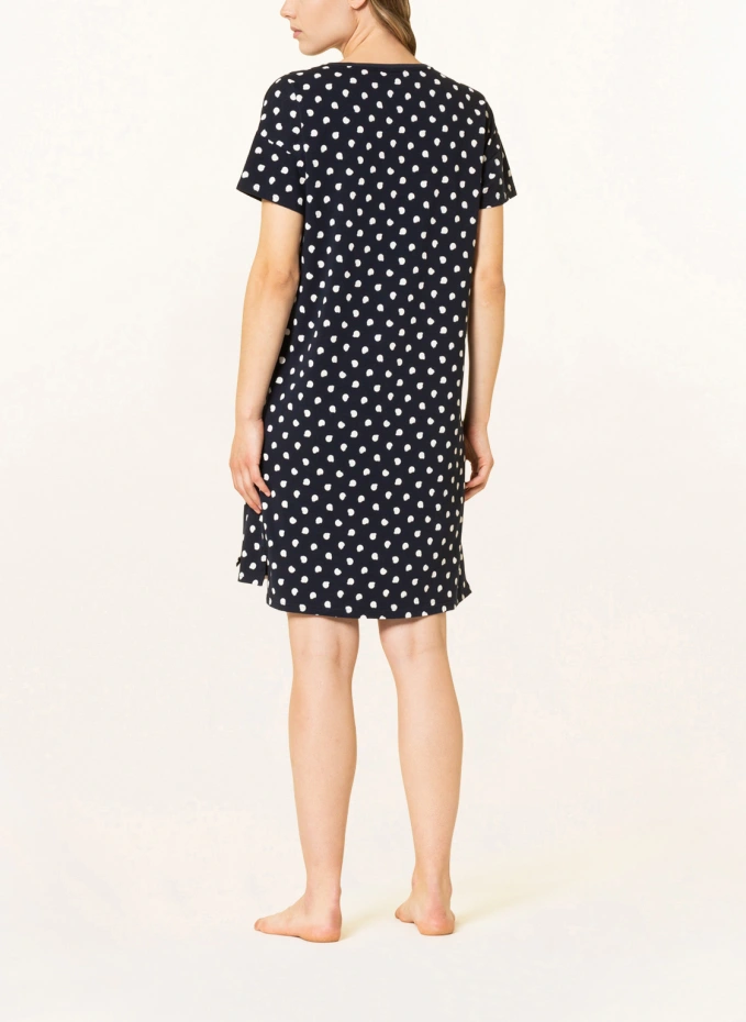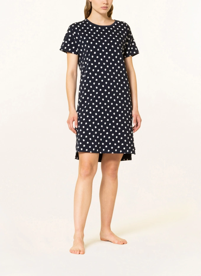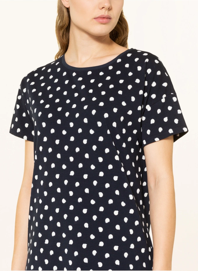 Прямого покроя. Круглый вырез. Короткие рукава. Боковые разрезы. Точечный узор. Качество Джерси