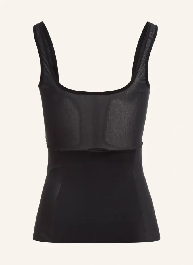 Облегающий фигуру крой. Открытая конструкция груди. Широкие бретели. Корректирующий эффект для талии и живота. Элегантные детали из силовой сетки. Очень плоские швы. Высококачественная смесь материалов