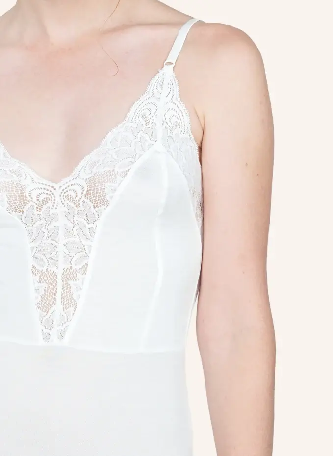 Несмотря на это, ХАННА демонстрирует прекрасную фигуру. Мягкий шелковистый микромодал обеспечивает ощущение комфорта, а нежные вставки из итальянского кружева делают боди особенным. Благодаря вставкам из микромодала боди непрозрачно на груди, поэтому его можно носить не только как нижнее белье, но и как верх. Регулируемые бретели бюстгальтера и застежка-кнопка спереди делают его подходящим для повседневного использования. Подходит: закажите свой обычный размер. Стирайте при температуре 40°C в деликатном режиме с использованием мягкого моющего средства. шелковистый, тонкий, эластичный одинарный трикотаж. плоские швы и отделка. Рост модели 1,70 м, размер 38. Без косточек.