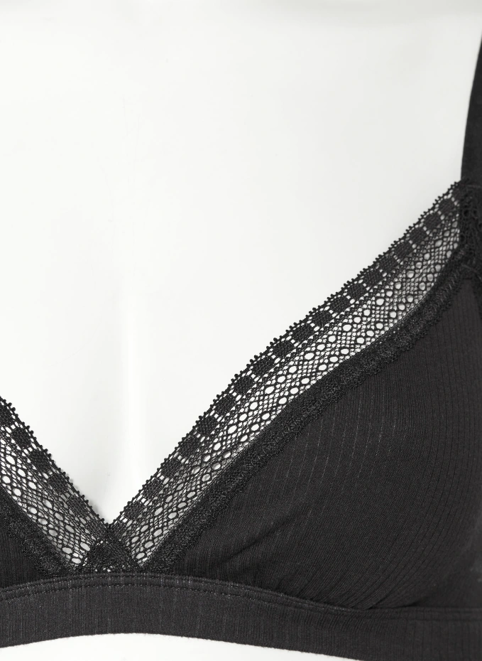 Мягкие чашки. Не железный. Без боковых стержней. Эластичная лента под грудью. Регулируемые бретели-спагетти. Регулируется в четыре этапа сзади с помощью петельки. Непрозрачная обработка. Бесшовная обработка. Печать этикетки сбоку. Кружевная отделка на чашках. Тонкое ребро. Эластичная обработка хлопка