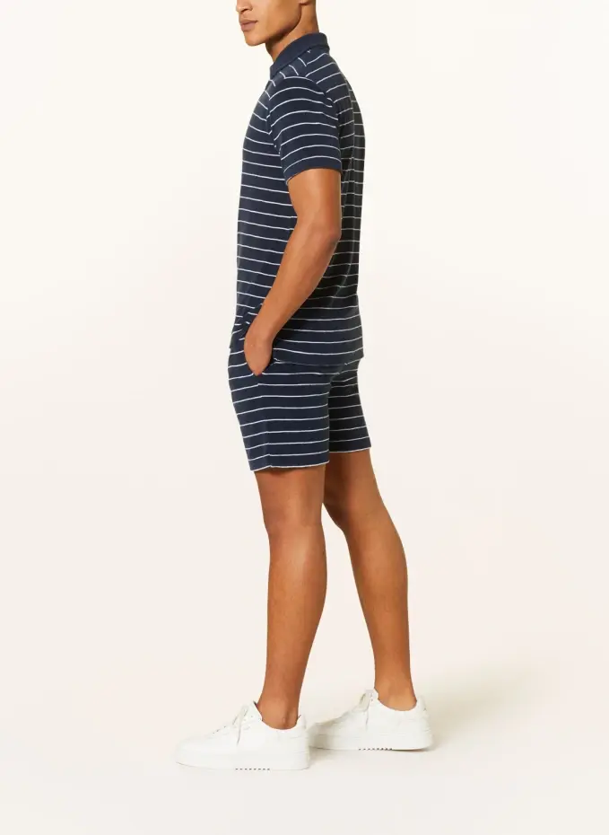 Высокая талия. Короткая, прямая нога. Боковые карманы. Полосатый узор. Терри качество. Чистый хлопок
