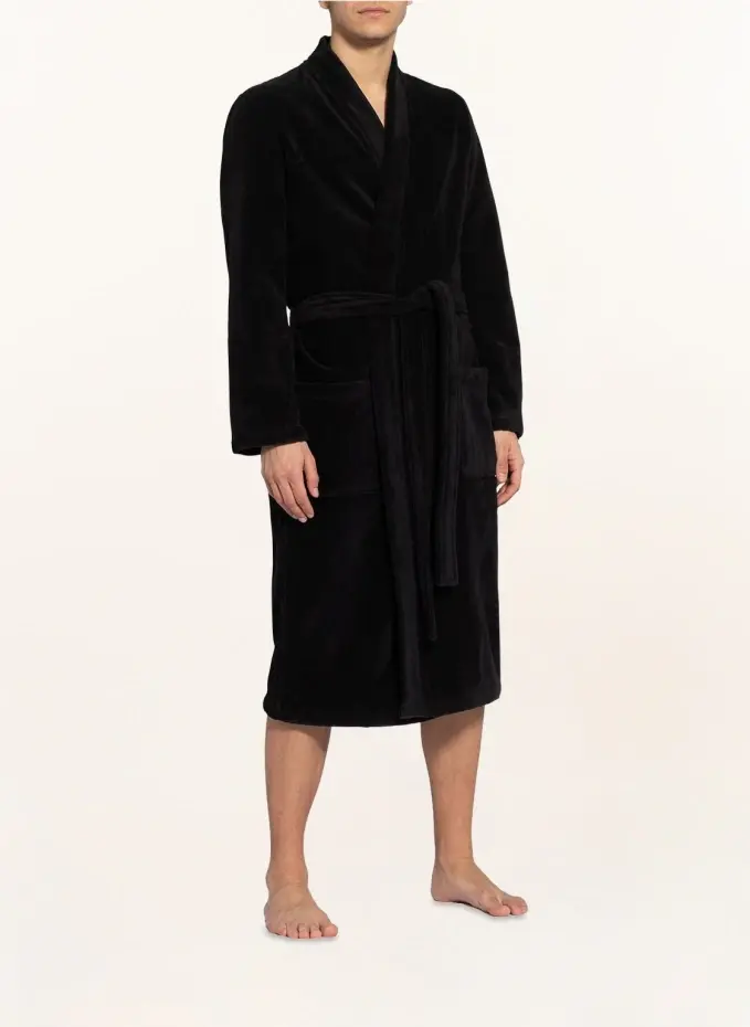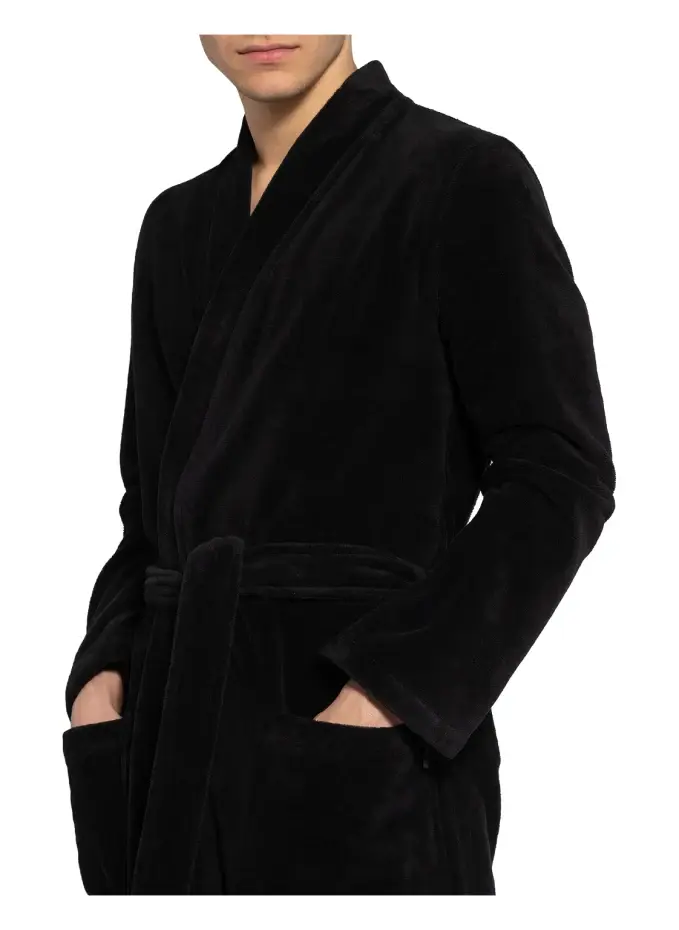 Материал: махровая ткань. Шалевый воротник. Боковые карманы. Дополнительный встроенный карман на молнии. Пояс с петлями