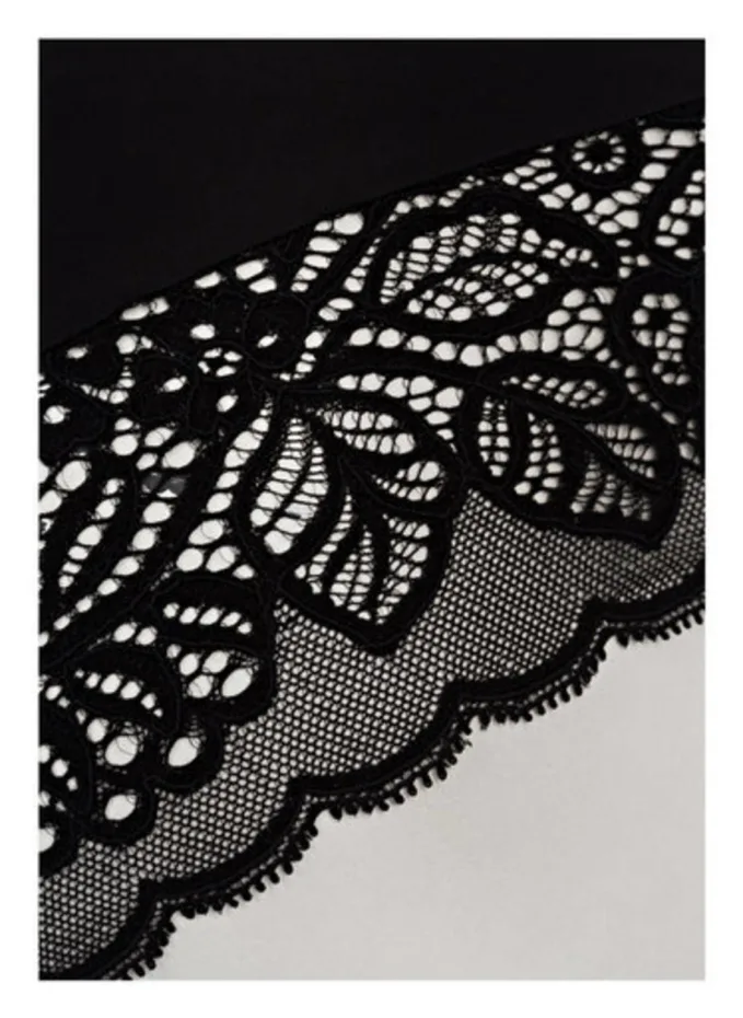 Непрозрачная обработка. Пояс до бедра. Прямой крой штанин. Умеренное прикрытие низа. Кружевная отделка.