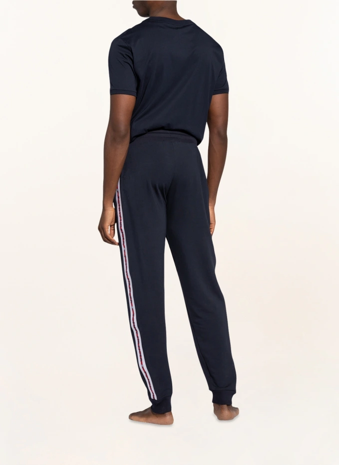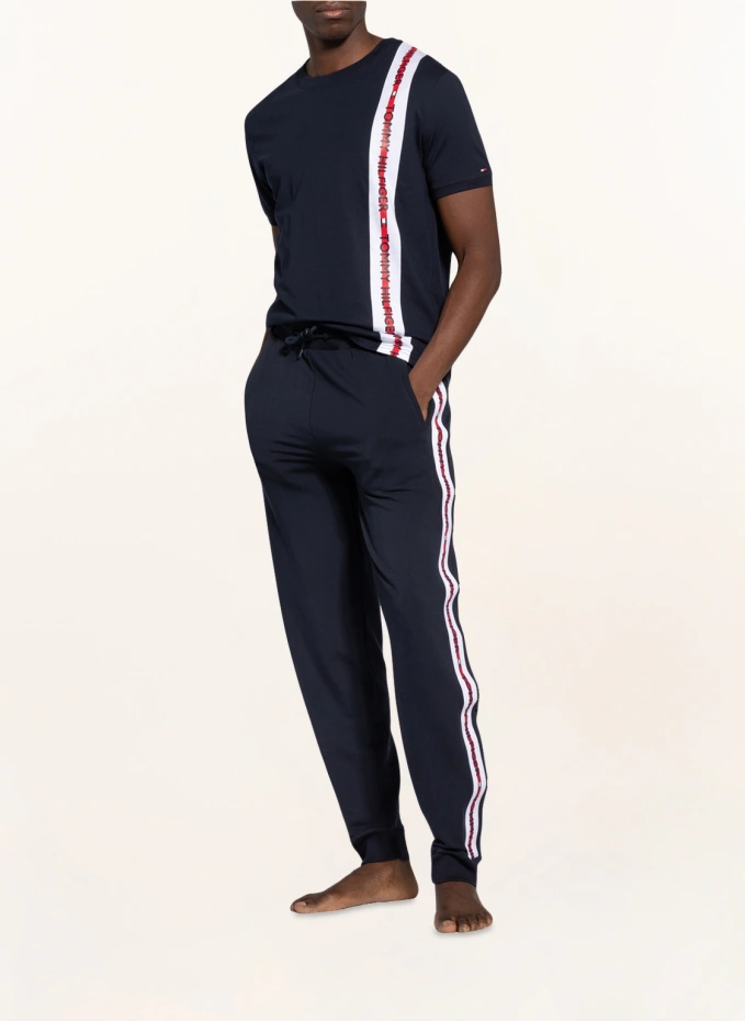 Эластичный пояс со шнурком. Прямая нога. Боковые карманы. Полоски галлонов с надписью на этикетке. Качество Джерси