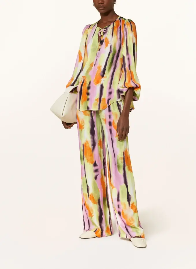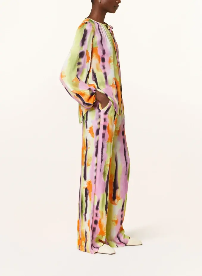 Высокая талия. Прямая нога. Эластичный пояс со шнурком. Боковые карманы. Печать тай-дай. Плавное качество материала