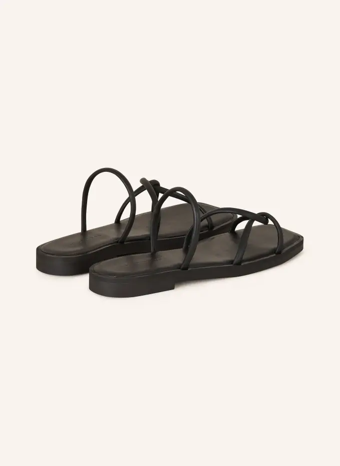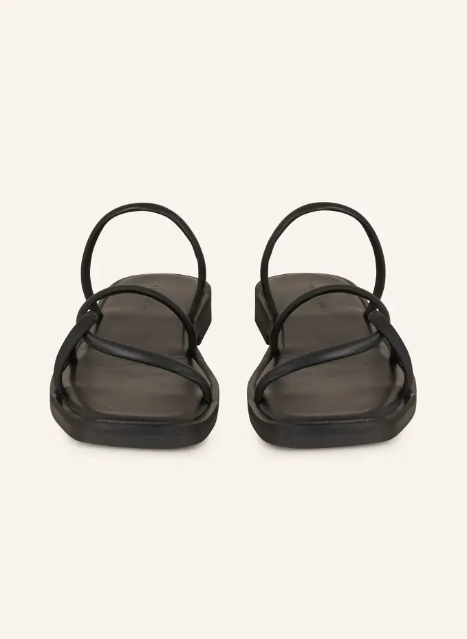 Гладкая кожа. Узкие бретели. Передняя часть квадратной формы. Нескользящая подошва