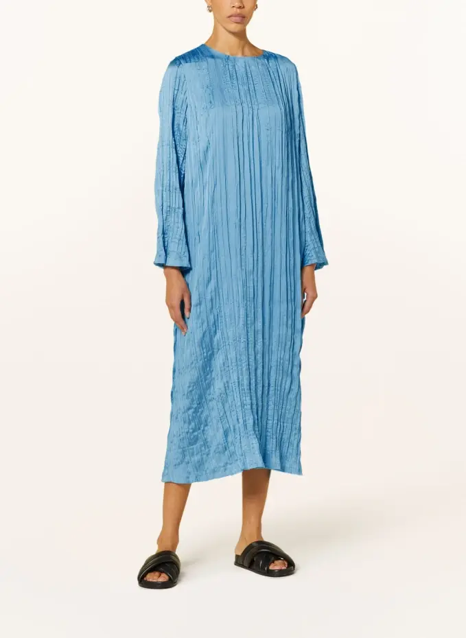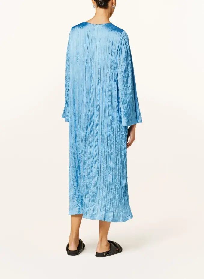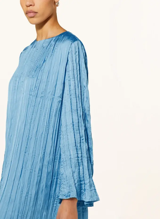 Широкий крой. Круглый вырез. Длинный рукав. Концы рукавов расклешены. Застегивается на тонкую молнию по центру спинки. Боковые карманы. Обработка на подкладке. Качество крепа