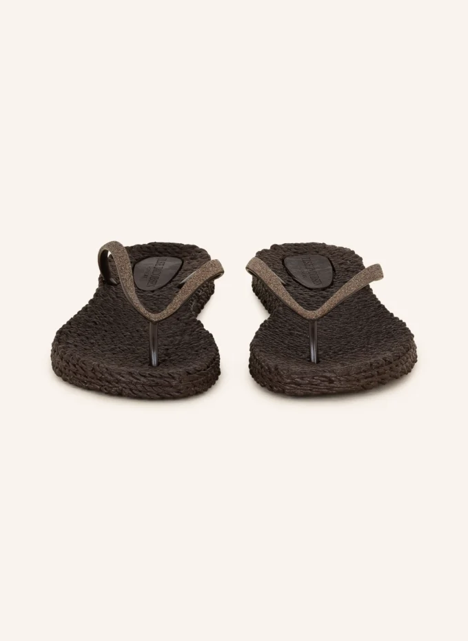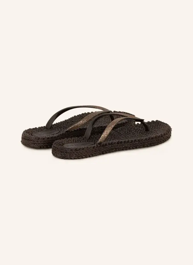Синтетика с плетеным эффектом. Столб для ног. Узкие бретели с блестящей отделкой. Текстурированная подошва. Нескользящая подошва