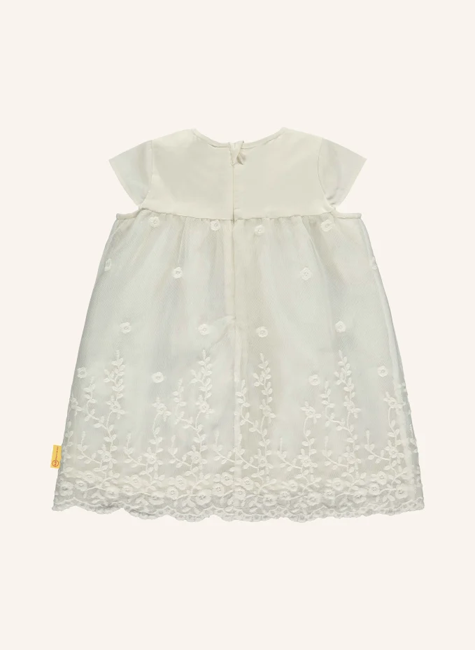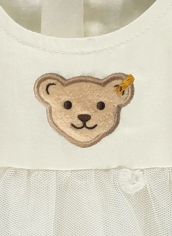 Великолепный внешний вид гарантирован этому широкому летящему платью. Объемная основа, короткие рукава и юбка с рюшами делают его еще более элегантным. Сзади имеется молния, что повышает комфорт. Верх выполнен из хлопкового атласа, юбка – из хлопковой вышивки. Натуральный белый цвет легко сочетается с джинсовыми тканями. Плюшевый мишка спереди будет сопровождать вашего малыша в повседневной жизни. Пушистая плюшевая голова будет сопровождать вашу принцессу несмотря ни на что. юбка с рюшами. Молния сзади. Верх из хлопкового атласа.