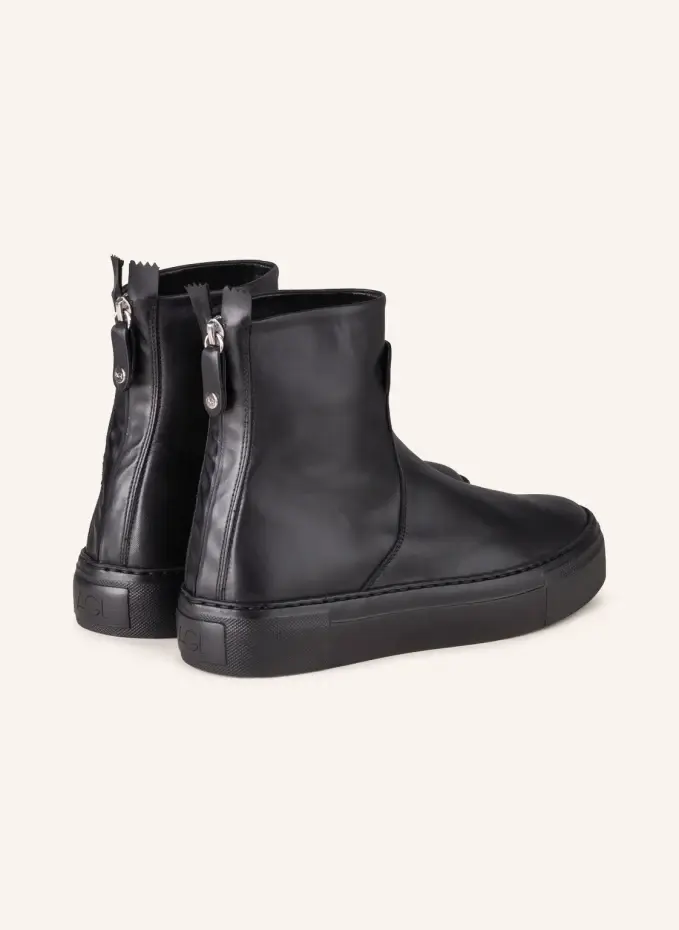 Гладкая кожа. Молния сзади голенища. Носок миндалевидной формы. Текстурированная подошва. Деталь логотипа на молнии. Сделано в Италии
