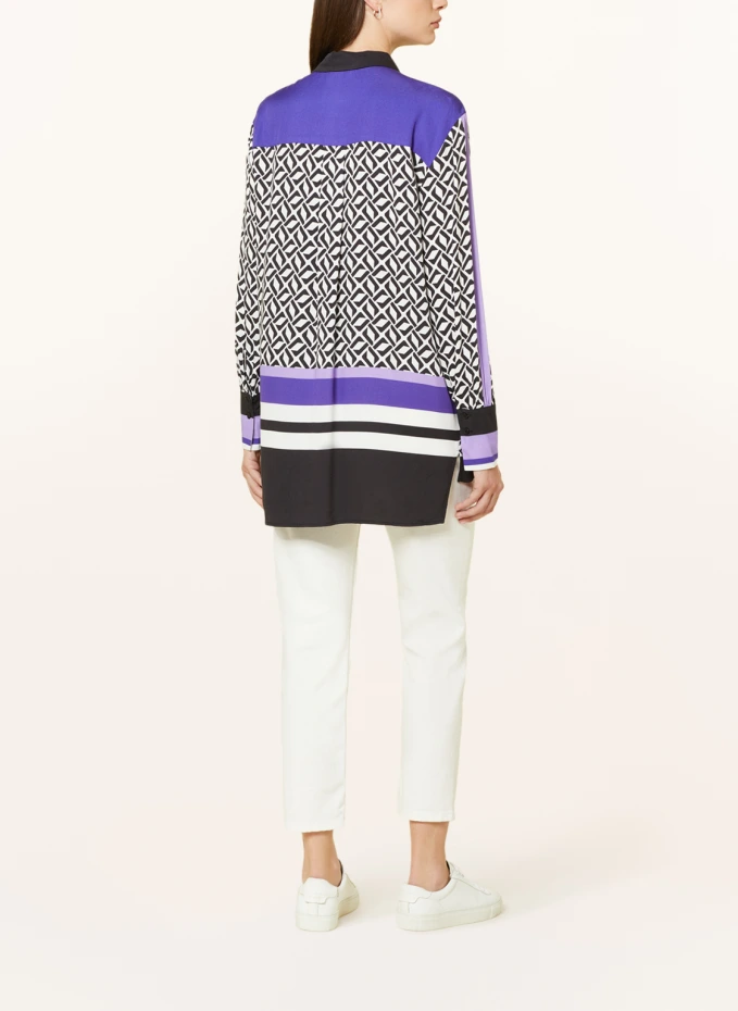 Прямого покроя. Воротник рубашки. Закрывается на планку с пуговицами во всю длину. Манжета на двух пуговицах. Удлиненная спинка. Сплошной узор. Мягкое ощущение