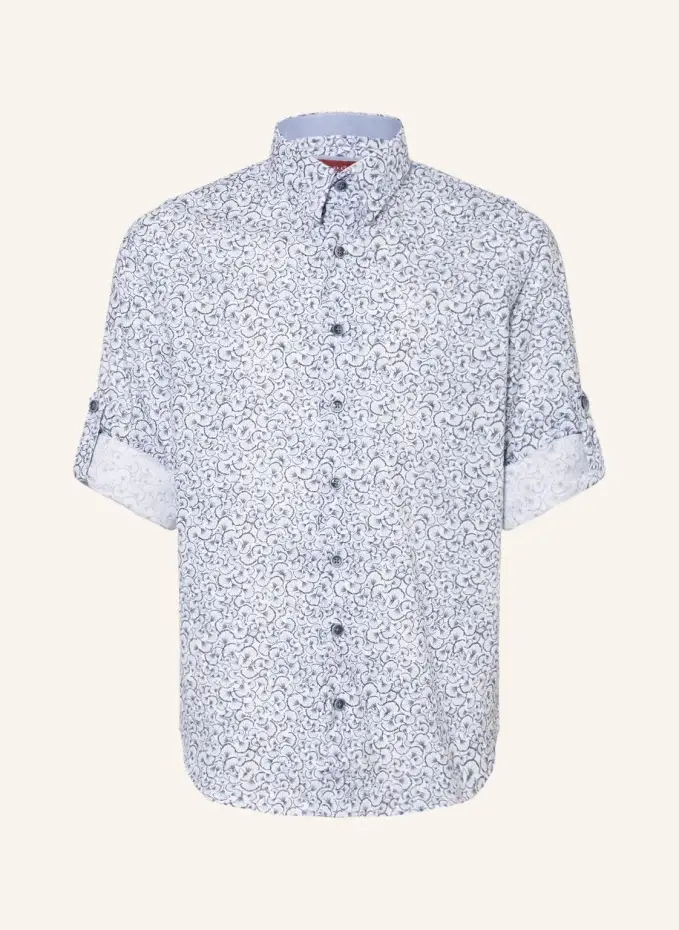 Для мальчиков. Прямого покроя. Кентский воротник. Закрывается на непрерывную гладкую планку на пуговицах. Регулируемая по ширине манжета на одной пуговице. Закругленный край. Сплошной принт. Эластичный хлопок, качество.