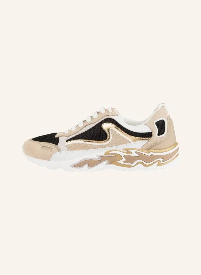 Вы уже загораетесь этой парой? Кроссовки Sandro с пламенным мотивом покорили наши модные сердца. Благодаря непринуждённому сочетанию материалов и тщательно продуманной подошве с контрастными вставками этот дизайн выводит любой наряд на новый уровень стиля. Смесь гладкой кожи, замши и сетки. Мягкий край стержня с язычком и надписью. Подкладочные вырезы, декоративные швы и защипы. Съемная подошва из ЭВА. Широкая подошва с прорезиненными вставками в форме пламени. Профилированная подошва с пламенем.