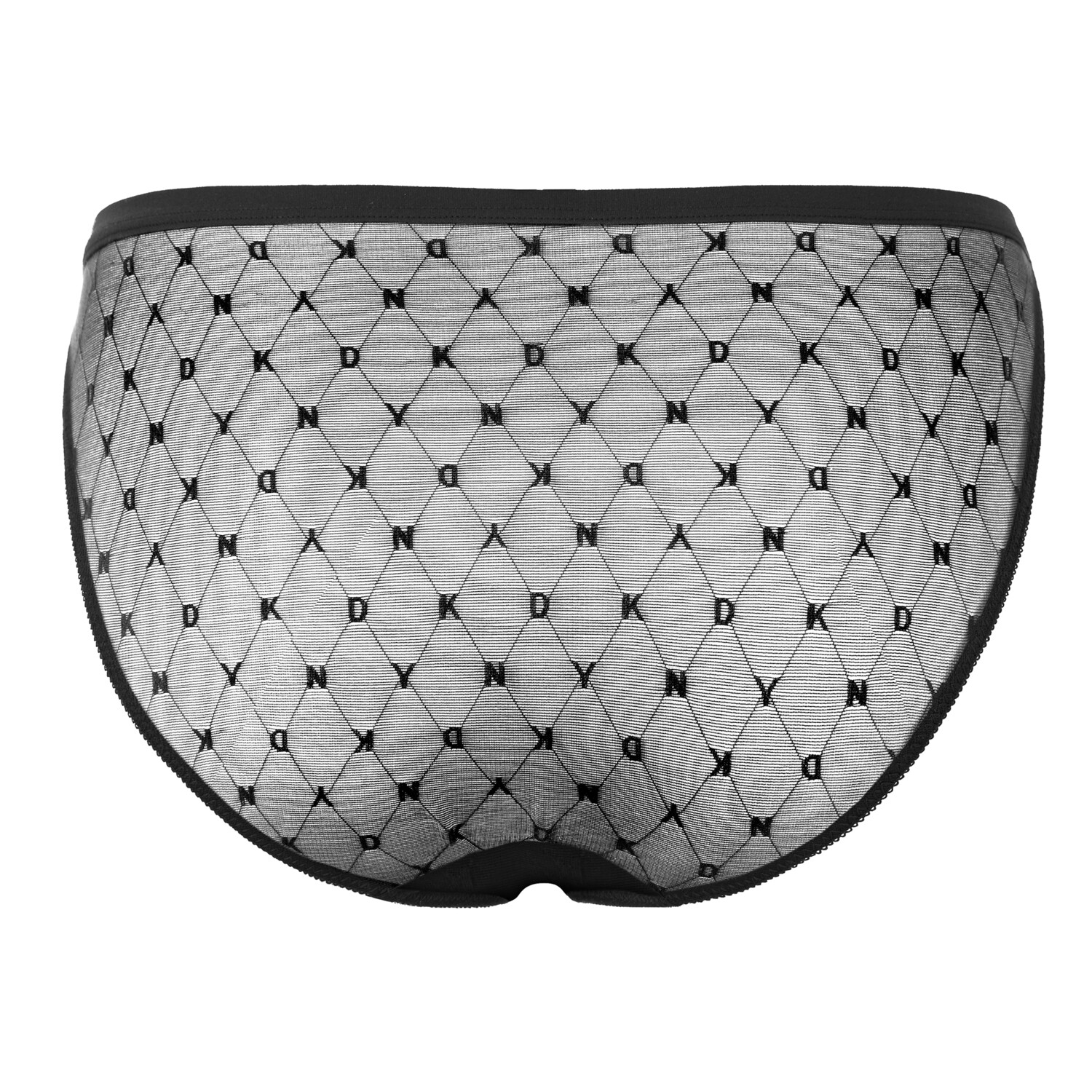 Сексуальные и прозрачные трусики бикини в сеточку – настоящий праздник для глаз. Монограмма DKNY обработана ромбовидным узором и визуально выделяет изделие. Эластичный пояс и высокие вырезы на штанинах обеспечивают оптимальный комфорт в течение всего дня.