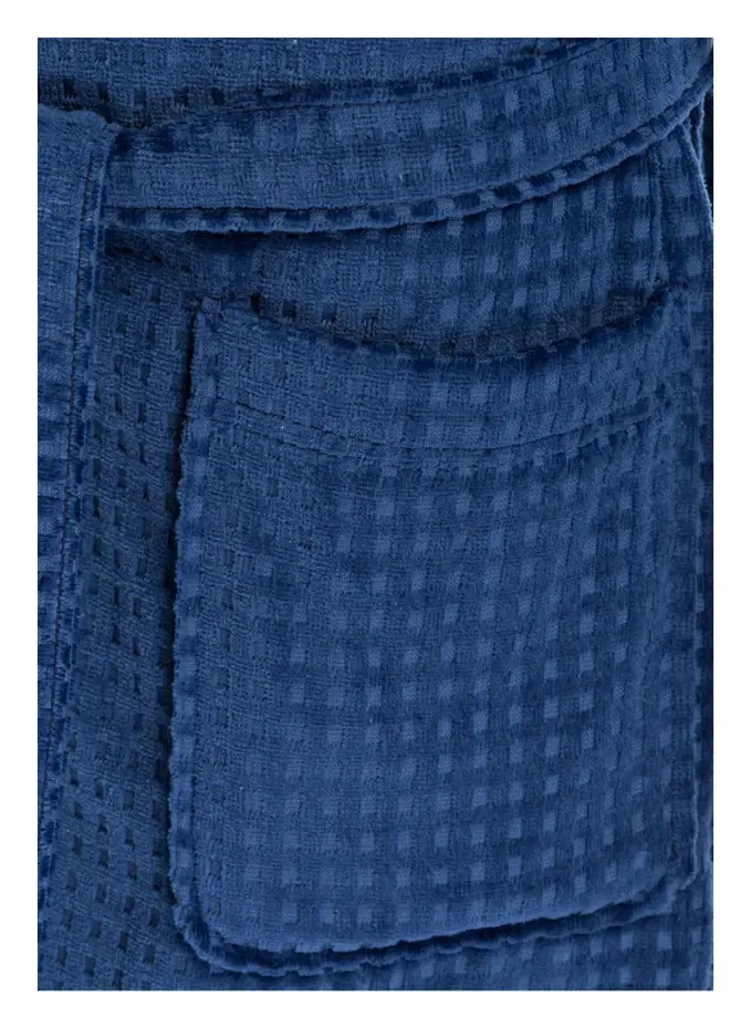 Махровая ткань. Накладные боковые карманы. Завязывающийся пояс. Подвесная петля. Ярлык-флажок сбоку. Чистый хлопок. Сделано в Германии