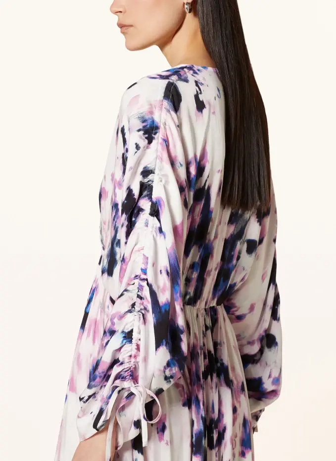 Прямого покроя. Раздел Cache-Cœur. Длинный рукав. Сборка на кулиске на рукавах. Безлинейная обработка. Абстрактный принт по всей поверхности