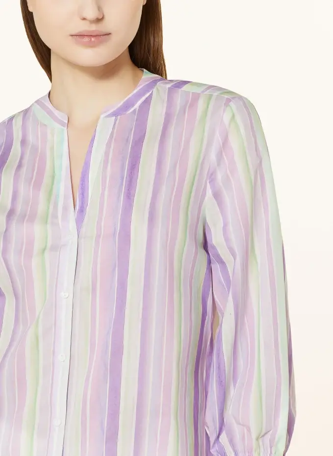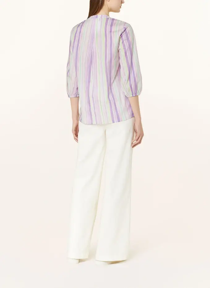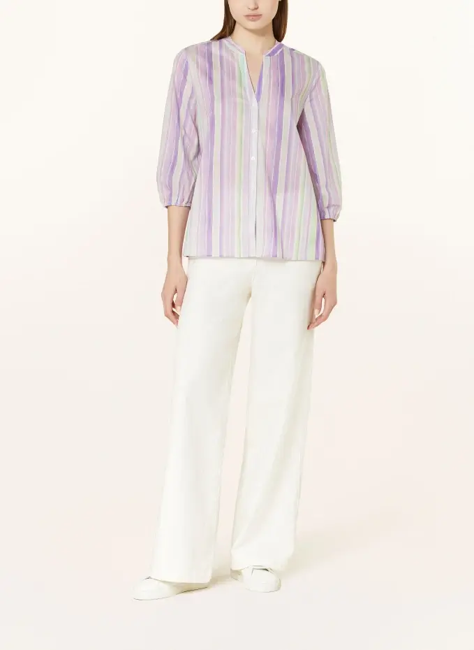 Прямого покроя. Вырез туники. Закрывается на непрерывную гладкую планку на пуговицах. Эластичные кончики рукавов. Слегка удлиненная задняя часть. Полосатый узор. Чистый хлопок