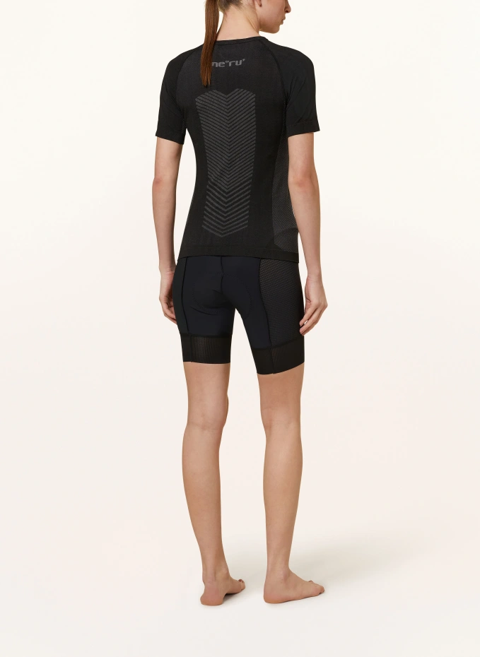 Изготовлен из смеси функциональных материалов. Центральная часть передней и задней части из эластичного материала. По бокам качественная эластичная сетка на ногах. Плотно прилегающая нога. Длина ноги: короткая. Эластичный пояс. Карман на молнии с перфорацией по всей поверхности на заднем поясе. Со встроенной дышащей подушкой сиденья с регулировкой температуры. Манжеты на ножках с силиконовыми полосками внутри. Светоотражающие детали. Детали этикетки. Частично своеобразная конструкция шва. Гладкое ощущение