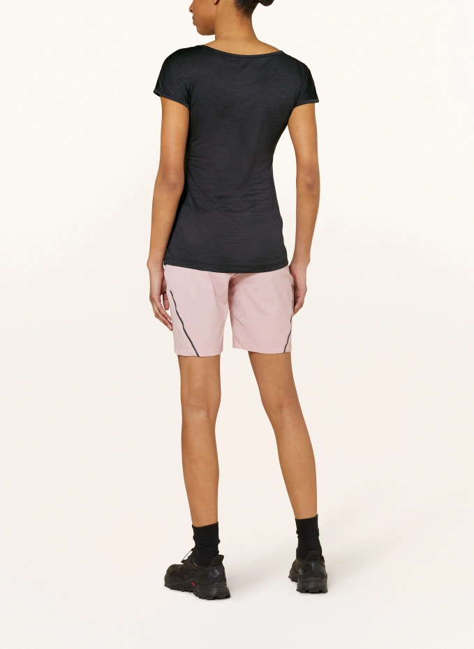 Изготовлен из функционального материала. Дышащая, влагоотталкивающая и быстросохнущая. Растяжка в 2 стороны. Посадка согласно производителю: Regular Fit. Прямого покроя. Круглый вырез. Присборенные рукава. Закругленный край. Детали этикетки. Легкое качество материала. По словам производителя, он особенно подходит для пеших и треккинговых туров в жаркие дни.