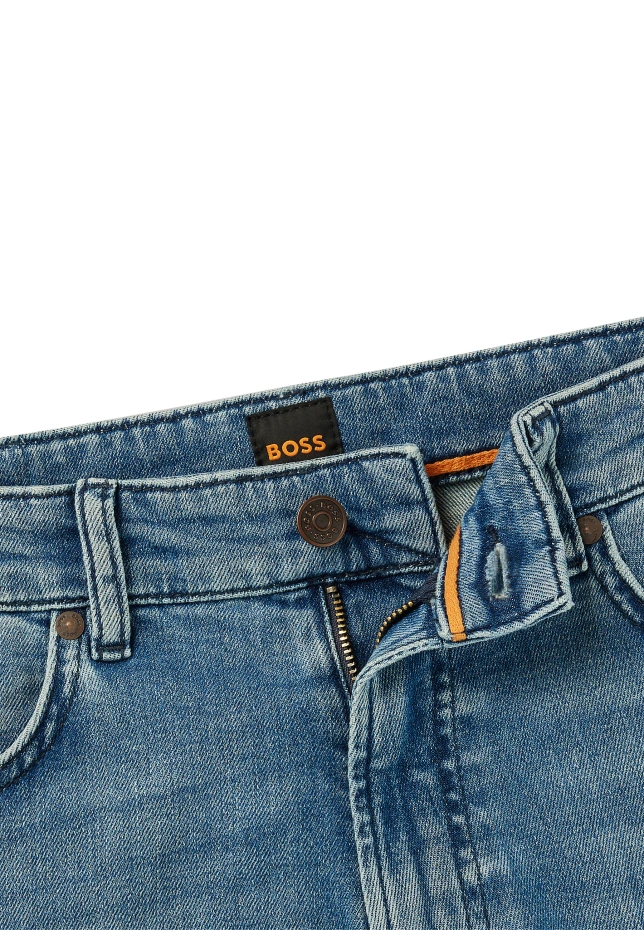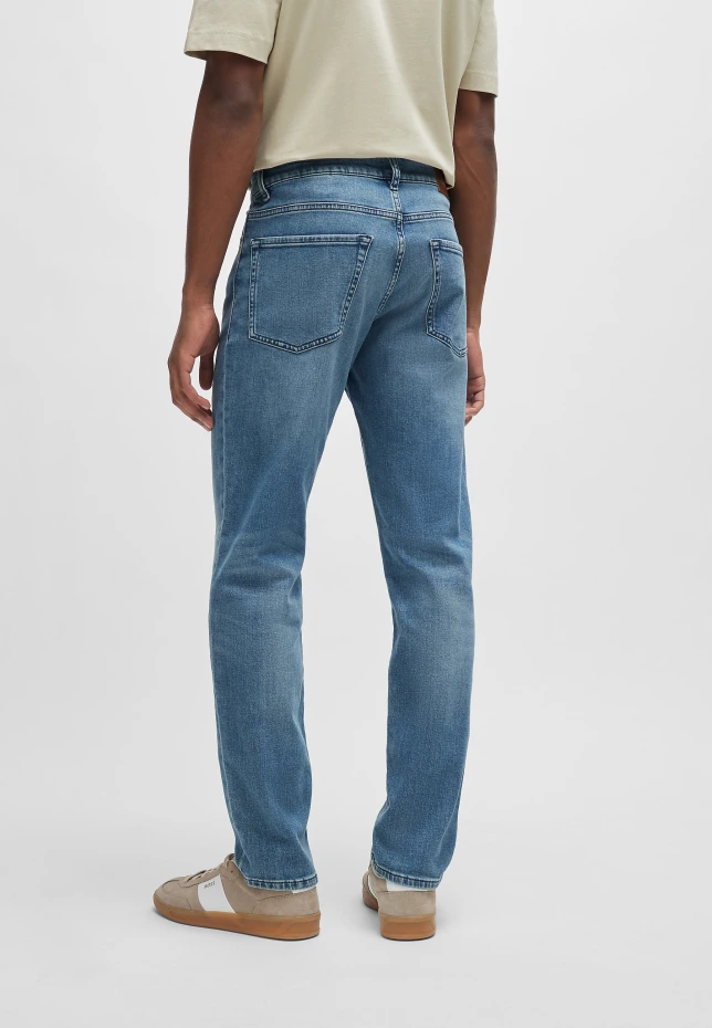 Мягкие джинсы BOSS из комфортного эластичного денима прямого кроя и зауженных штанин, представлены в фирменном оттенке синего цвета. Регулярная посадка. Средняя высота талии. Кнопка молнии. Передние карманы: Боковые карманы. Зауженная форма ножек. Задние карманы: Накладной карман. Стандартная длина. Ширина стопы: 38,0 см.